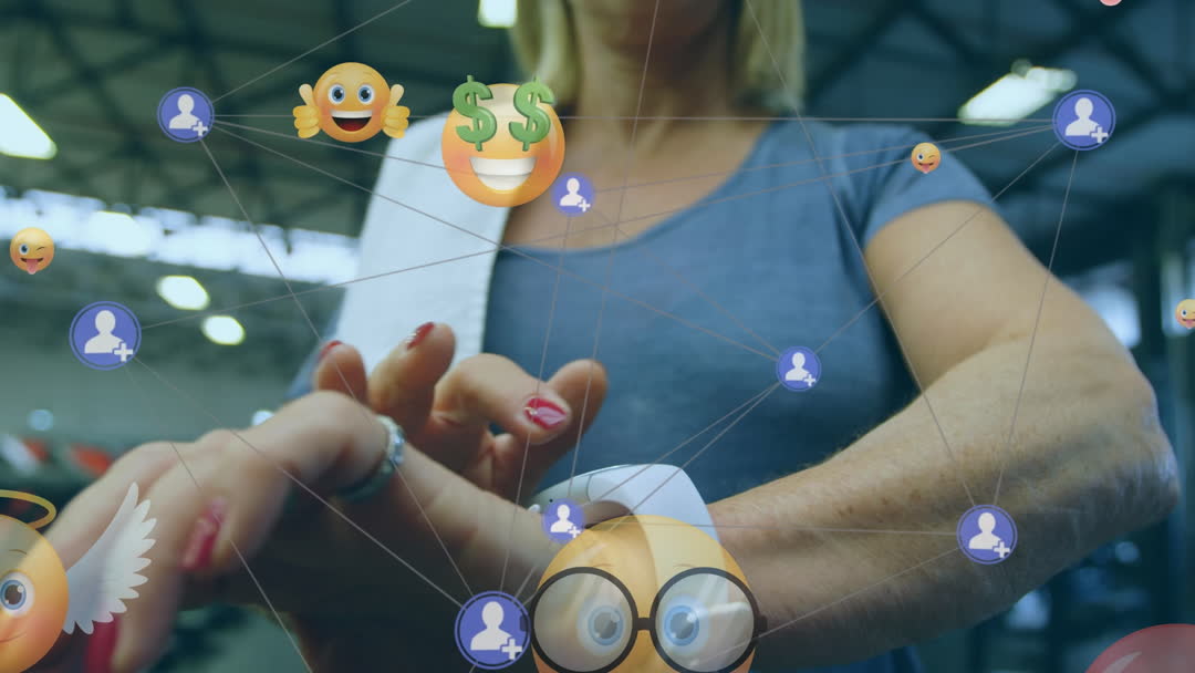 - Digital Tech Overlays Social Media Icons on Active Lifestyle