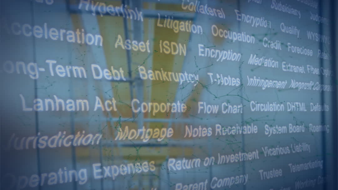 Digital text overlays various technical and financial terms on a stylized globe network background, suggesting global connections and online communication. Useful for illustrating topics related to digital technology, IoT, global connectivity, cybersecurity, and financial analytics across online platforms.