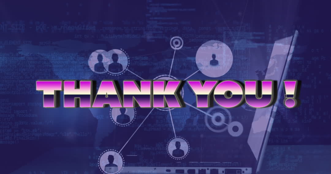 This colorful and visually striking design features a 'Thank You' message overlaying interconnected digital icons and data networks. Perfect for online communications, email headers, and presentations to express gratitude. The blend of technology and connectivity emphasizes appreciation in a modern, digital world.