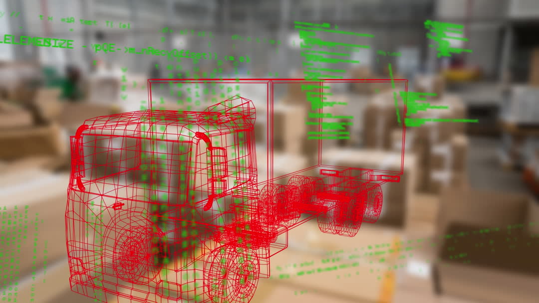 Digital Truck Model Overlay in Tech Warehouse Integration Video