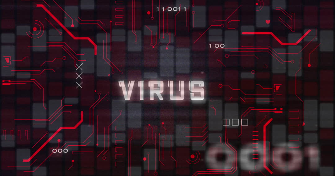 This design portrays a digital virus alert featuring a circuit board pattern and binary codes against a background of red and white bars. It symbolizes potential cyber threats and is ideal for illustrating topics related to cybersecurity, data security, and tech risks. Useful for articles, presentations, or educational materials focusing on digital security or hacking alerts.
