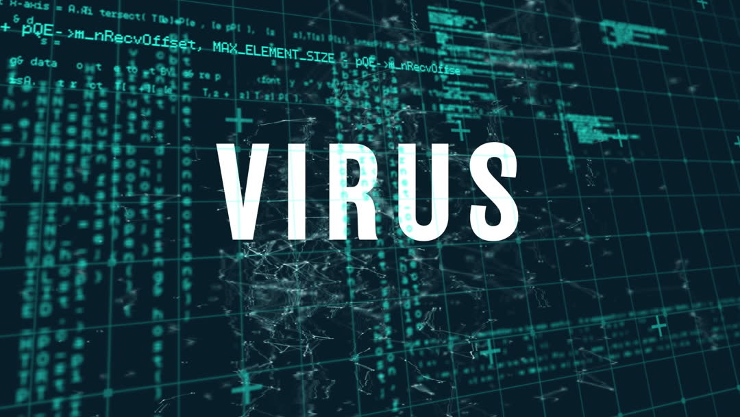 This visual represents concepts of digital intrusion and cybersecurity threats. It highlights technological implications akin to viral pandemics, symbolized by networks and binary code visualized on a grid background. Useful for illustrating cyber threats and IT security themes.