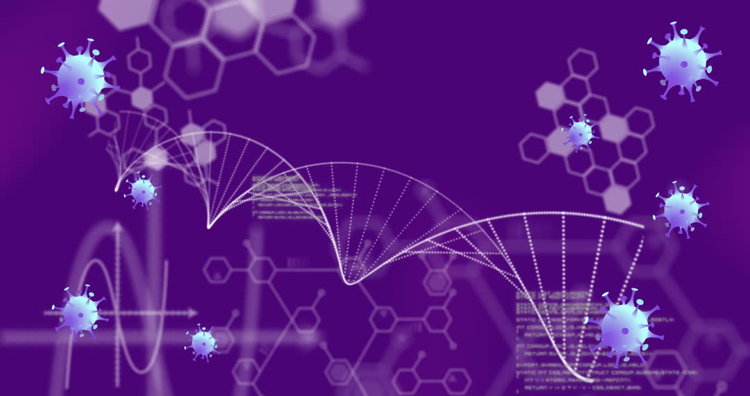 Abstract depiction perfect for illustrating articles on pandemic research analytics or tools for science and technology education. Ideal for health science blogs, biotechnology developments, or educational presentations focusing on molecular biology and healthcare advancements in viral studies.
