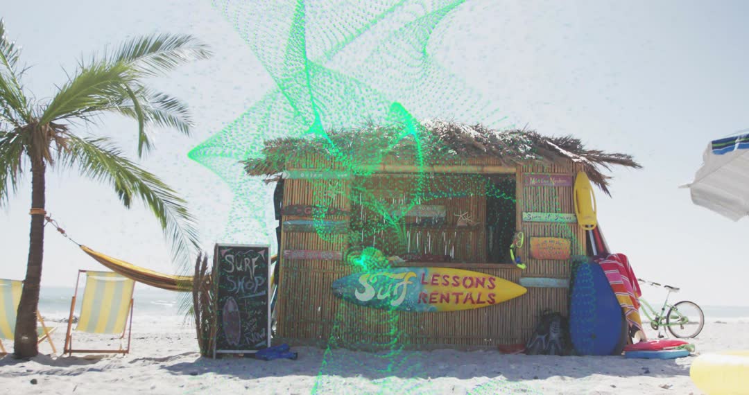 Digital Waveforms Over Growing Mesh on Beach Hut Surf Shop Video