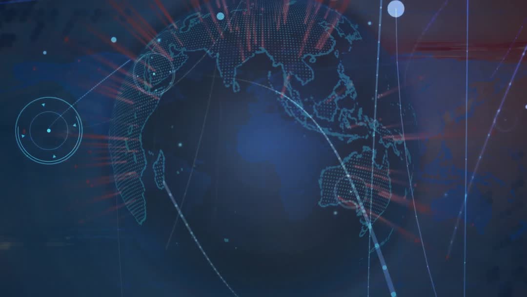 - Digital World Connectivity with Rotating 3D Globe and Data Pathways