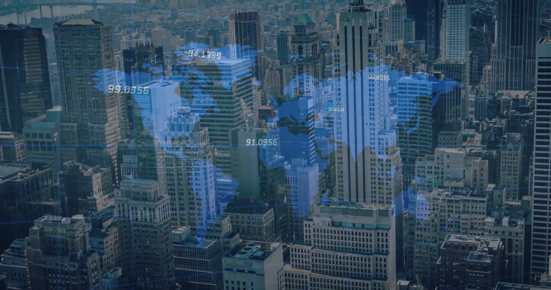 - Digital World Map Overlaying Urban Cityscape for Concept of Global Networks