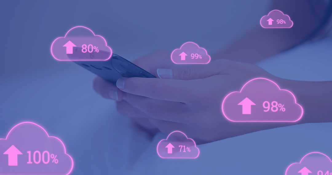 Visual representing the concept of cloud computing and real-time data sharing using smartphones. The video shows hands using a smartphone with cloudy upload icons and percentage symbols hovering above, emphasizing the growth and progress of digital connections. Ideal for illustrating subjects related to technology, wireless communication, online data sharing, digital business strategies, and internet-based services. Suitable for technology websites, business presentations, and digital marketing materials.