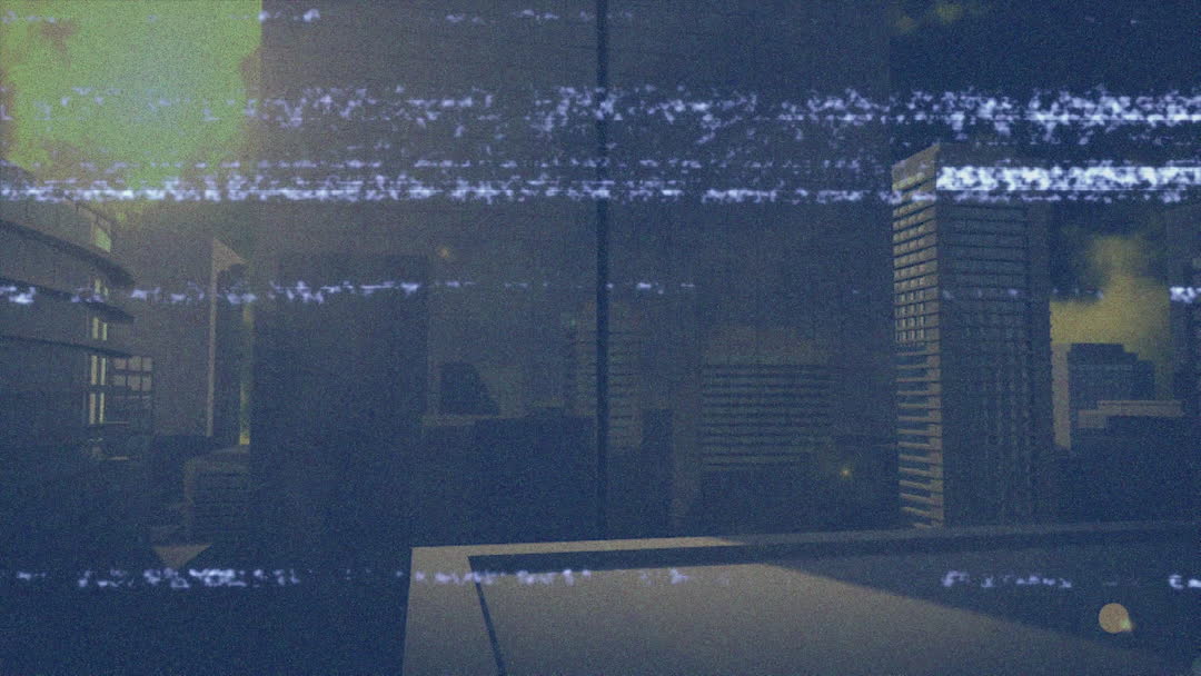 Animated scene depicting a dark urban skyline with digital interference adds a futuristic, technologically advanced feel. Ideal for use in digital art projects, creative advertisements, or presentations that aim to depict themes of modernity, digital disruption, or urban hustle.