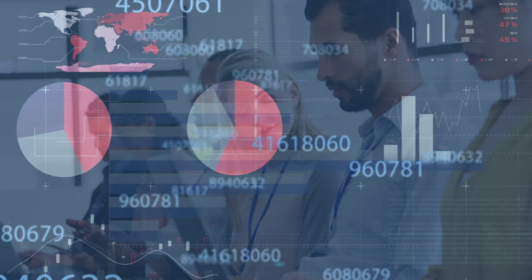 This video depicts a group of diverse professionals at a business conference, deeply engaged with their smartphones and laptops. Overlaid graphics highlight data and analytics, suggesting a focus on global business processes. Ideal for themes related to corporate strategy, digital connectivity, international collaboration, or technological innovation.