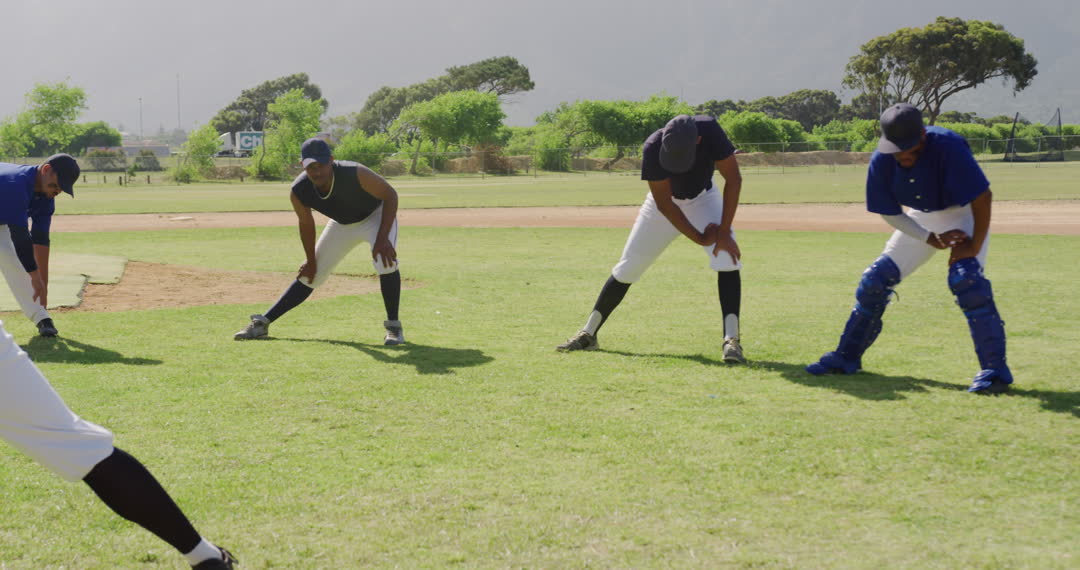 - Diverse Baseball Team Stretching During Practice