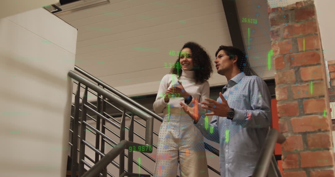 Diverse Business Discussion with Data Overlay in Modern Office Video