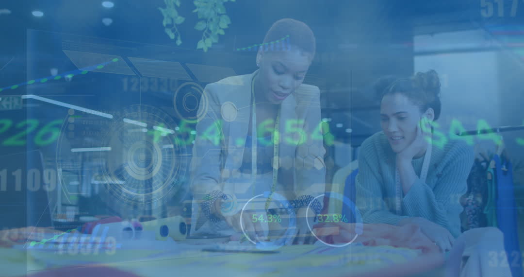 - Diverse Business Professionals Analyzing Data with Digital Overlay