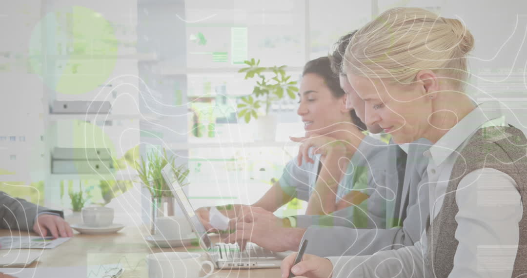 Ideal for illustrating concepts related to technology integration in corporate environments, data analysis discussions, and modern business communication techniques. Use in resources about diverse teamwork, digital transformation strategies, and advanced analytic tools in a business context.