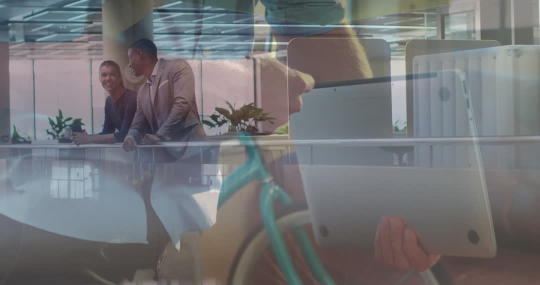 This video features a diverse group of business professionals in an office environment, emphasizing collaboration and technological integration. The gentle double exposure suggests simultaneous communication and decision-making processes, reinforcing themes of connectivity and modern business practices. Ideal for concepts related to teamwork, international business, and tech-driven innovation in corporate settings.
