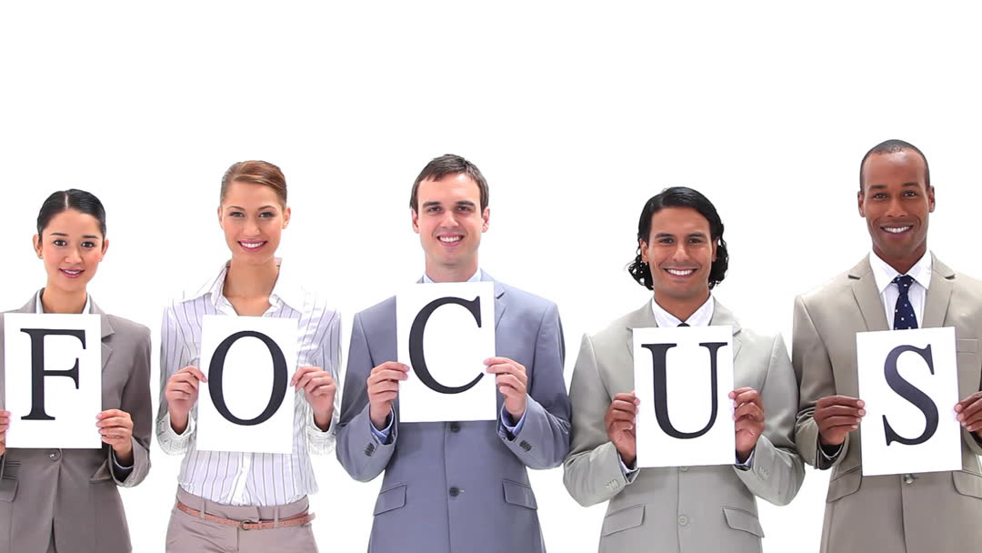 - Diverse Business Team Holding FOCUS Sign in Office Environment