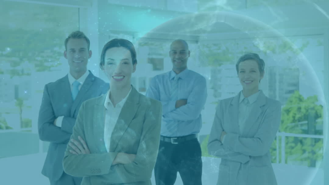 - Diverse Business Team with Globe Animation in Modern Office