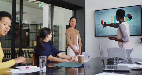 Diverse Businesswomen Presenting Sales Strategy in Modern Office Video