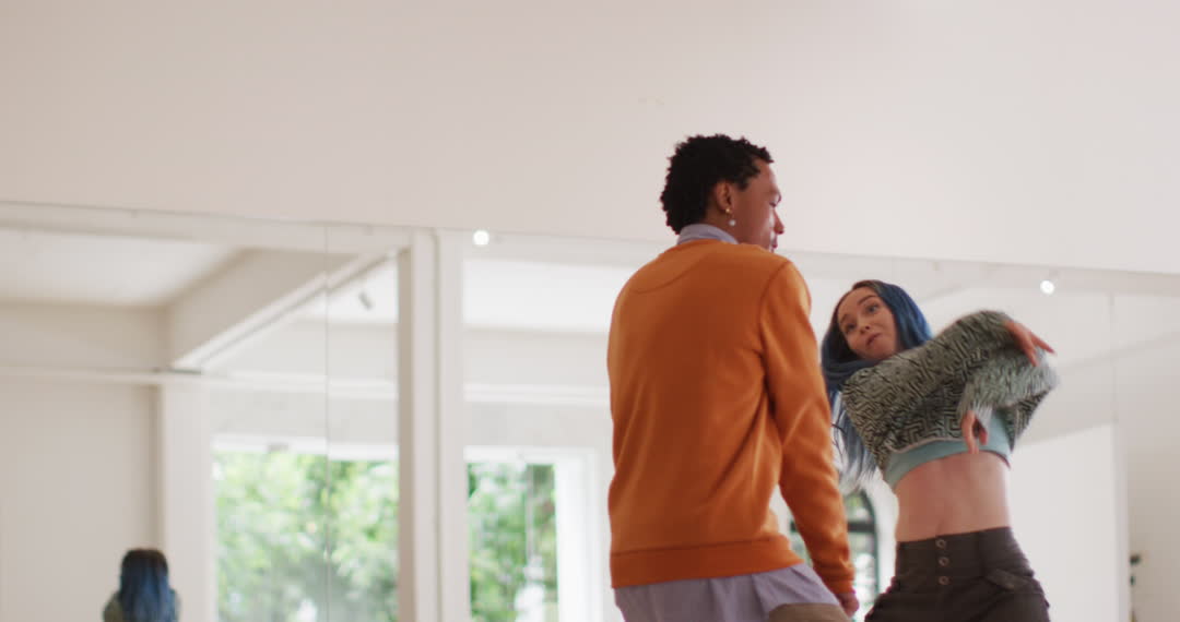 - Diverse Dancing Duo Enjoying Energetic Routine in Studio