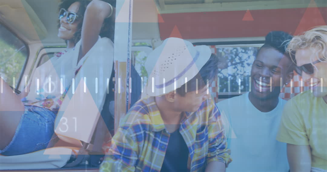 - Diverse Friends Enjoying Road Trip with Digital Data Overlay