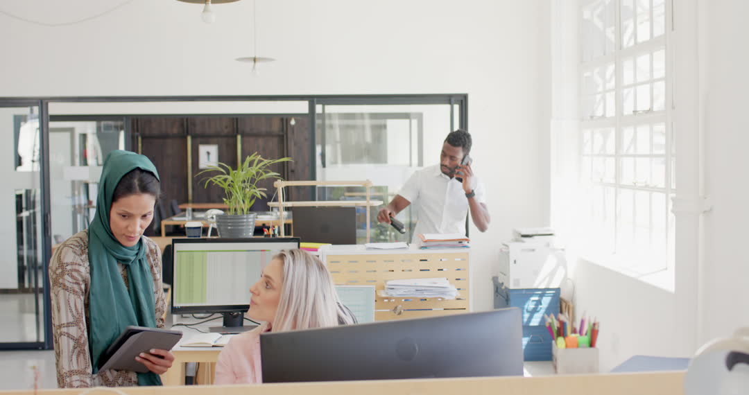 <a target="_blank" href=https://pikwizard.com/video/diverse-office-team-collaborating-on-project-with-technology/163a7332829f1c1e6276874171b545c2/>PikWizard</a>