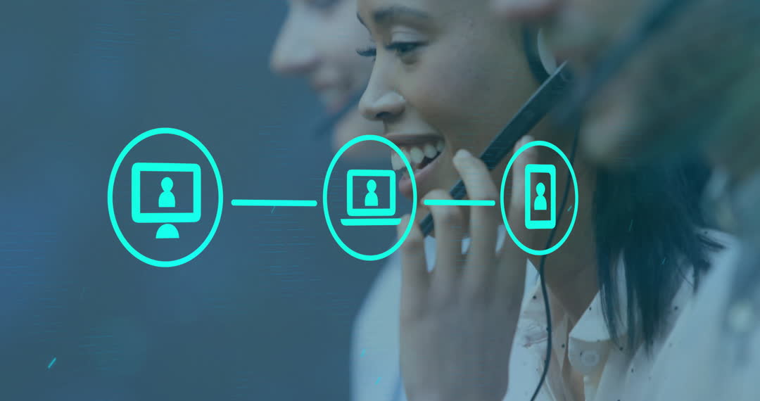 Diverse professionals are engaged in digital communication, symbolizing connectivity across multiple devices. Perfect for illustrating global networking, collaboration, customer service, and efficient communication strategies in the business and technology sectors.