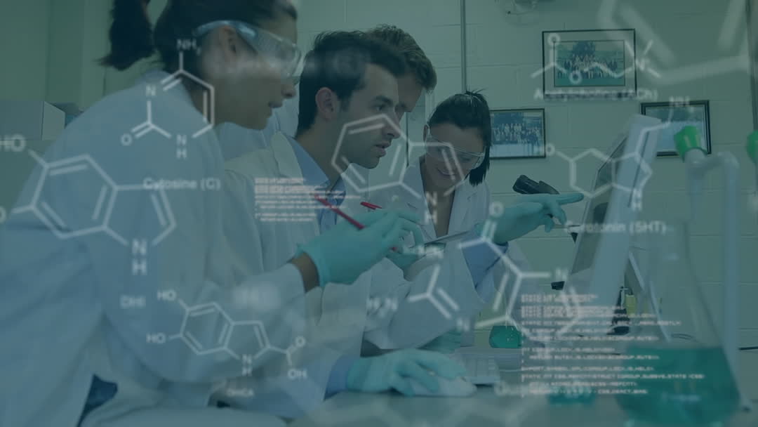 - Diverse Scientists Collaborating with Medical Data Animation in Modern Laboratory