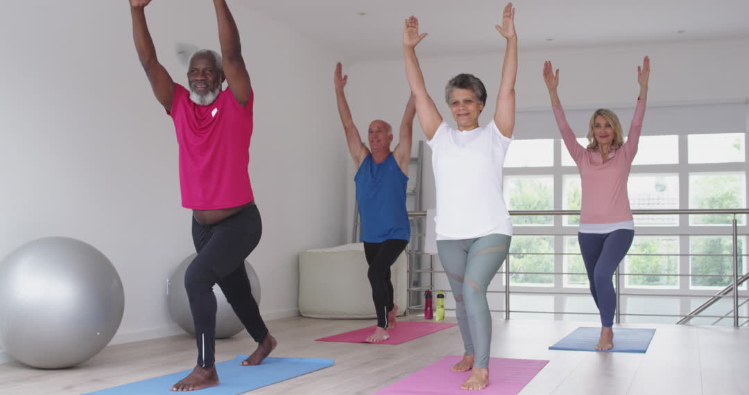 - Diverse Senior Group Enjoying Yoga Fitness Class at Studio