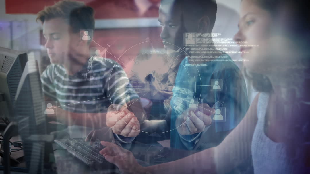Diverse Students Learning Technology in Connected Digital Classroom Video