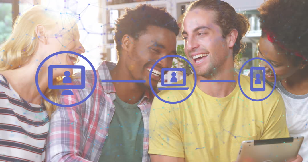 This vibrant video depicts a group of diverse young students interacting and enjoying time together, symbolizing global connectivity and friendship in the digital age. Graphic overlays of network connections illustrate the concept of online communication and collaboration. Ideal for campaigns emphasizing social media engagement, teamwork, diversity in education, and technological advancements.
