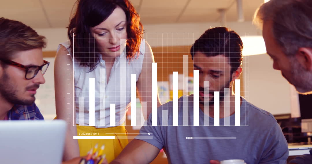 Diverse Team Analyzing Business Data with Graph Overlay Video