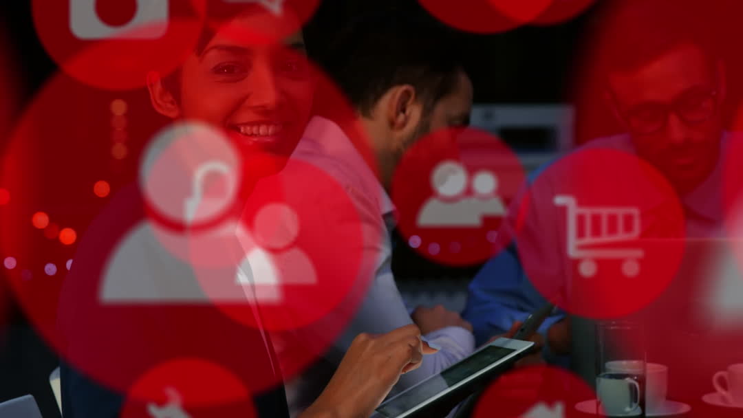 Diverse Team Analyzing Digital Media Widgets and Icons Video