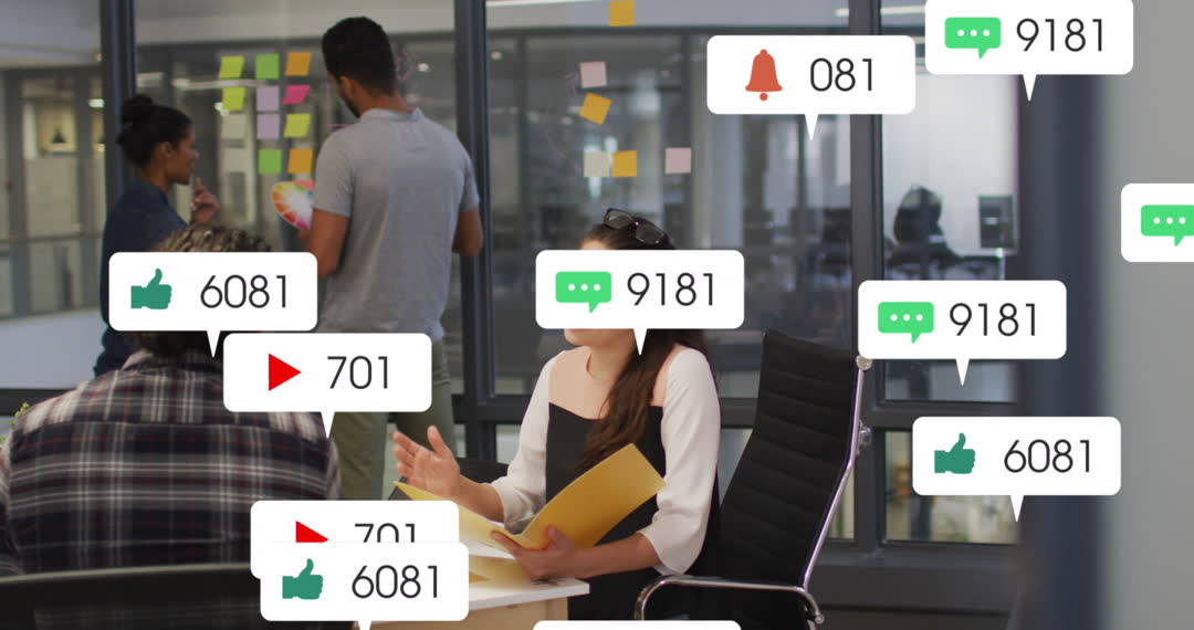 Diverse Team Brainstorming Amidst Social Media Notifications Video