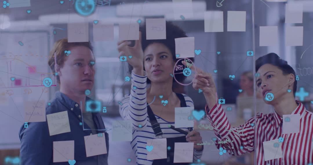 Diverse Team Brainstorming with Digital Technology Overlay Video