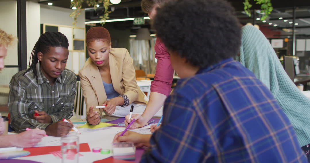 <a target="_blank" href=https://pikwizard.com/video/diverse-team-collaborating-on-creative-project-at-modern-office/f78317d3bc22d56932713a4a2972933e/>PikWizard</a>