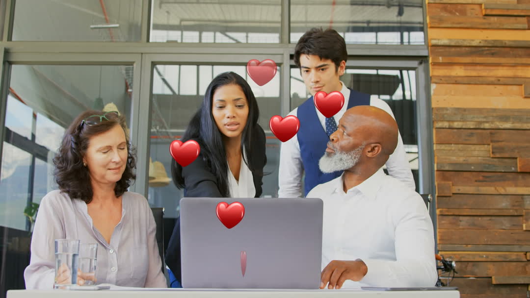 Diverse Team Discussing Animated with Heart Icons Overlay Video