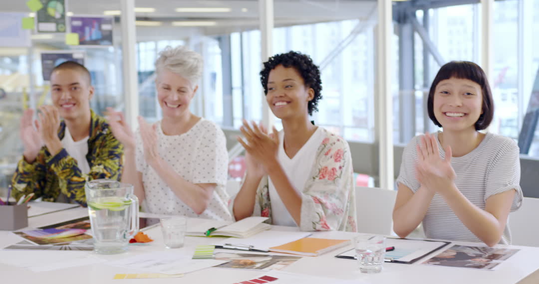 Diverse Team Engaging in Vigorous Applause During Creative Meeting Video