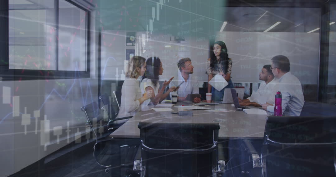 Diverse Team Meeting with Data Analytics Overlay Influence Video