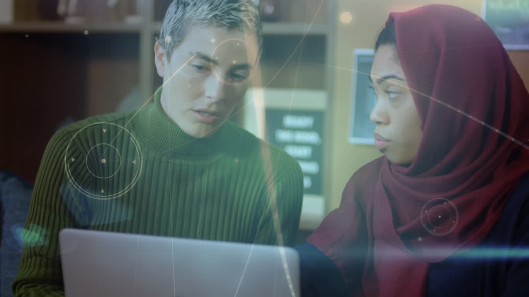 Diverse Women Collaborating with Futuristic Technology Interface Video