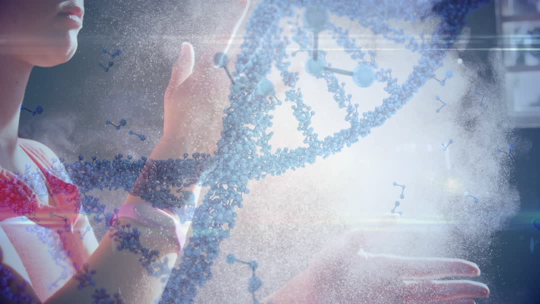 This visual concept blends DNA and molecular videory with a female athlete to convey ideas of scientific advancement and genetic influence on sports performance. Ideal for articles or presentations in genetics research, biotechnology applications in sports, fitness innovations, or explorations of how these affect athletic training and biology. Useful for websites, educational materials, and promotional content related to science in sports.