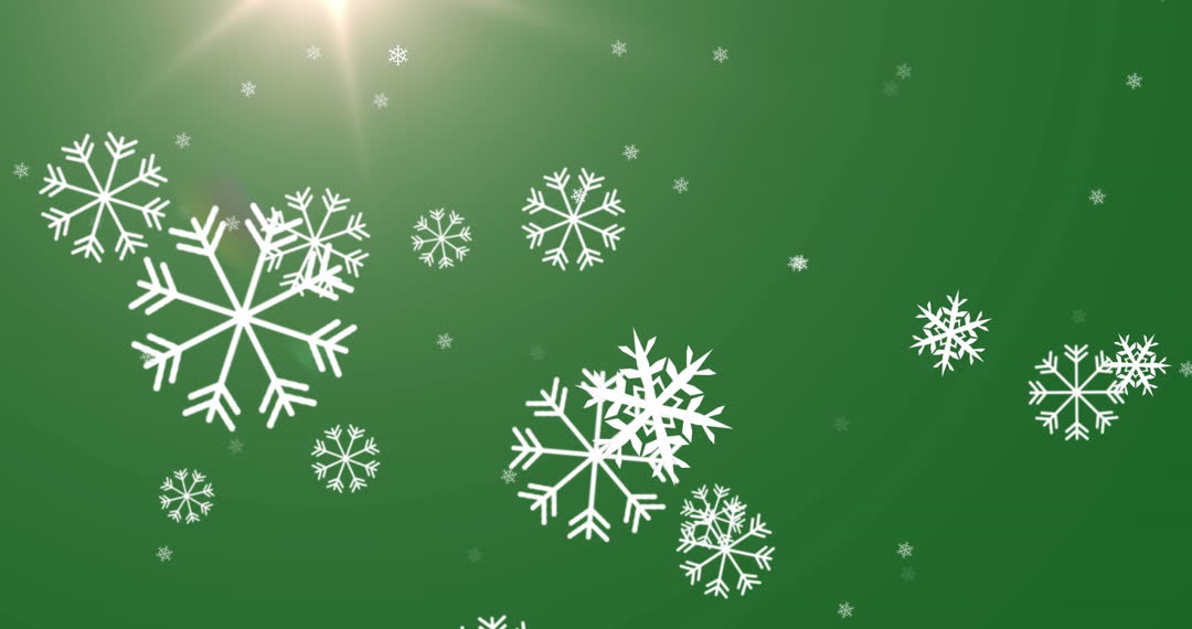 - DNA Floating Amid Sparkling Snowflakes on Green Background