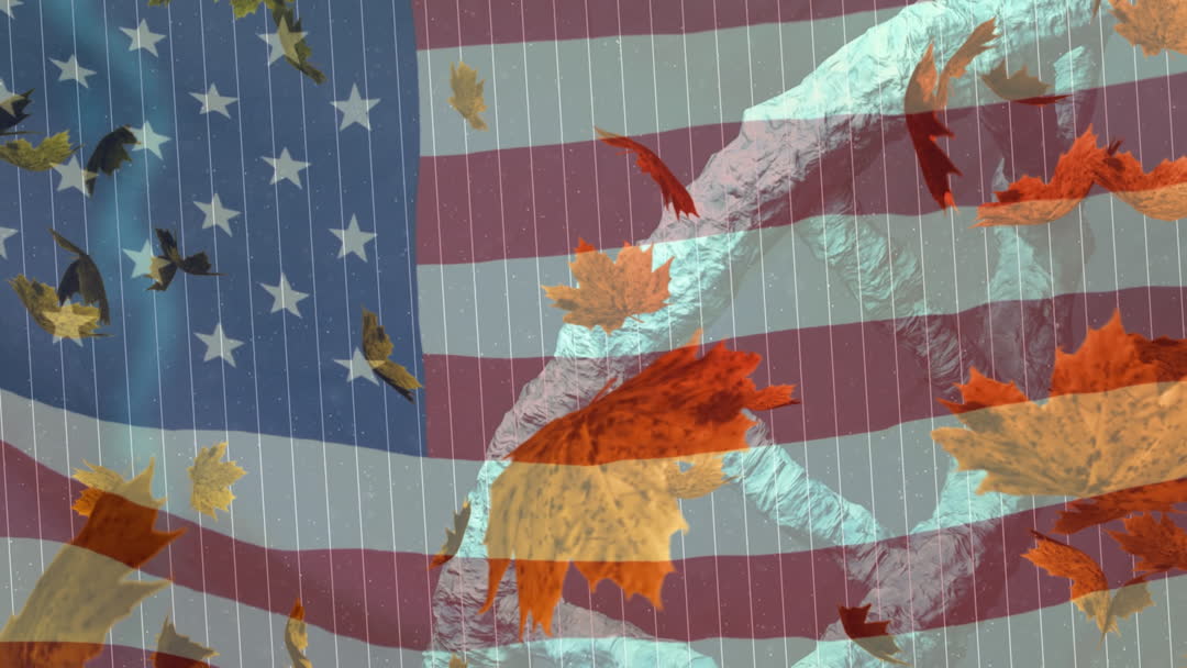 DNA Helix and Autumn Leaves Overlaid on USA Flag Video