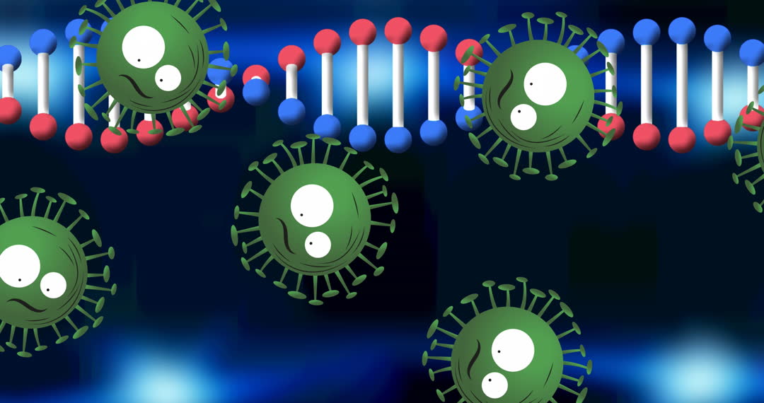 The videory of DNA strands intertwined with animated virus cells is ideal for educational content related to biology, genetics, and virology. This graphic may serve as a useful tool in explaining the interaction between viruses and genetic material, and it can be used in presentations, online courses, and media exploring global health or scientific research topics.