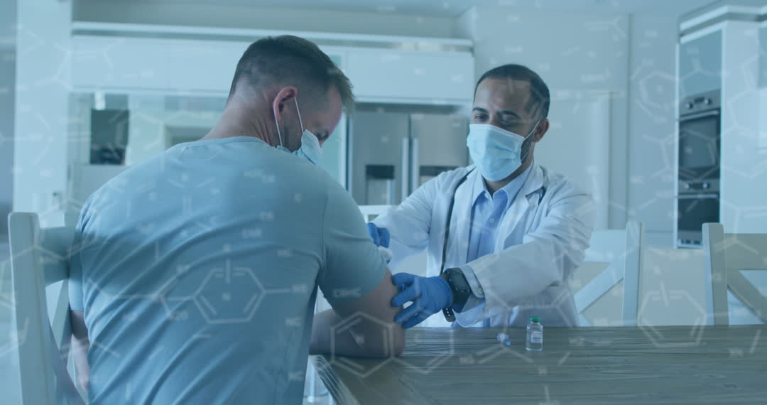 - Doctor Administering Vaccine to Patient Highlighted by Chemical Formulas
