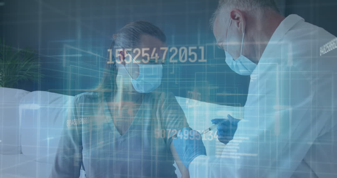 - Doctor Administering Vaccine with Data Overlay