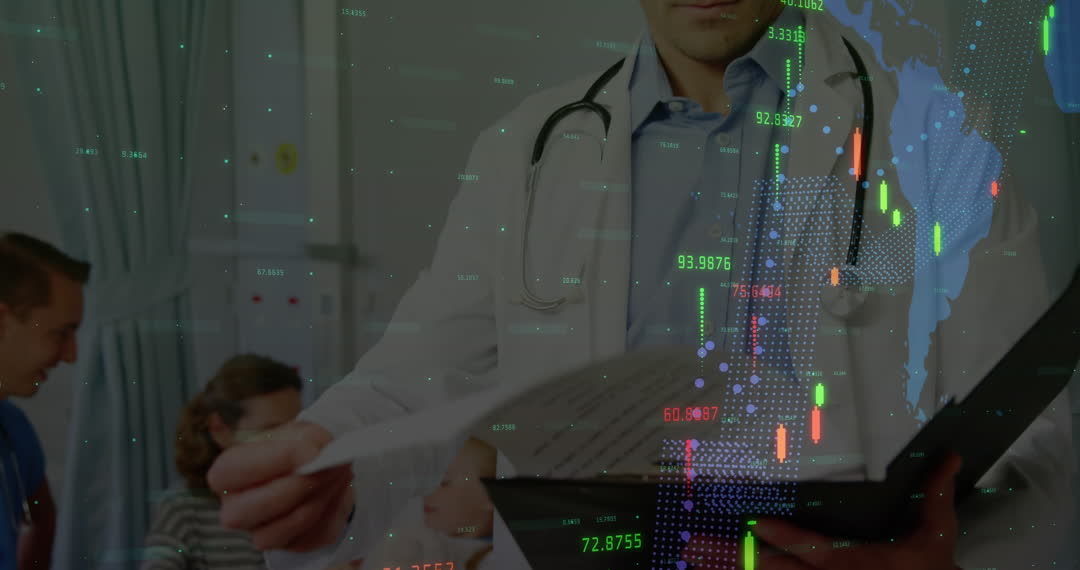 Doctor Analyzing Data Overlay with Global Medical Interface Video