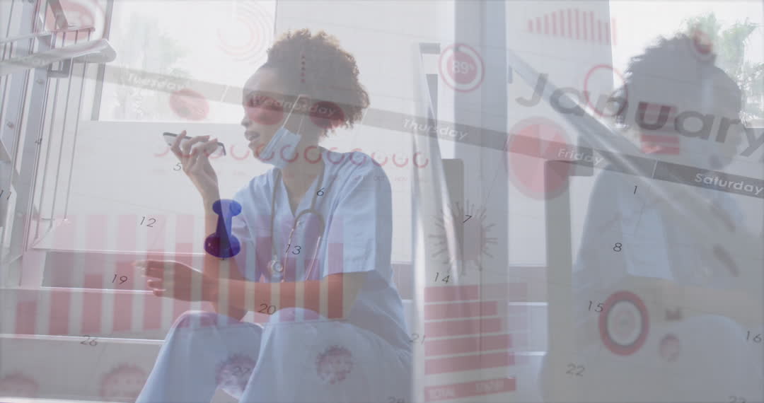 - Doctor Analyzing Data with Pandemic Graphs Overlay