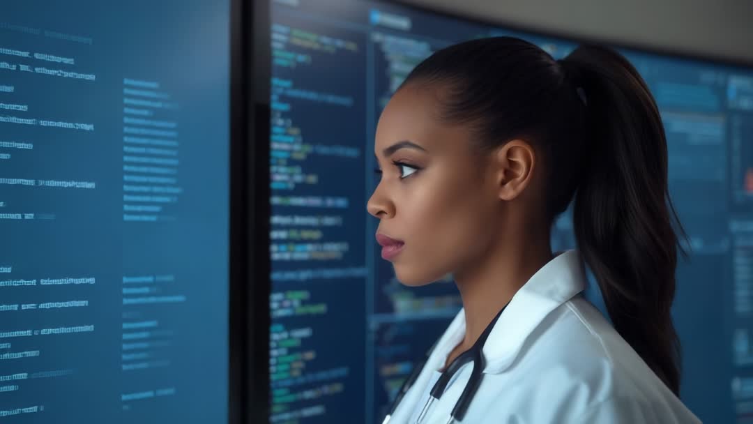 - Doctor Analyzing Digital Data on Large Screens in Modern Workspace