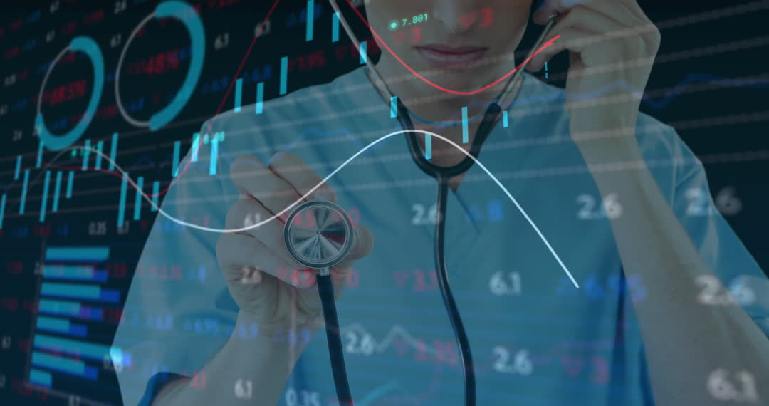 - Doctor Analyzing Financial Data with Stethoscope Overlay
