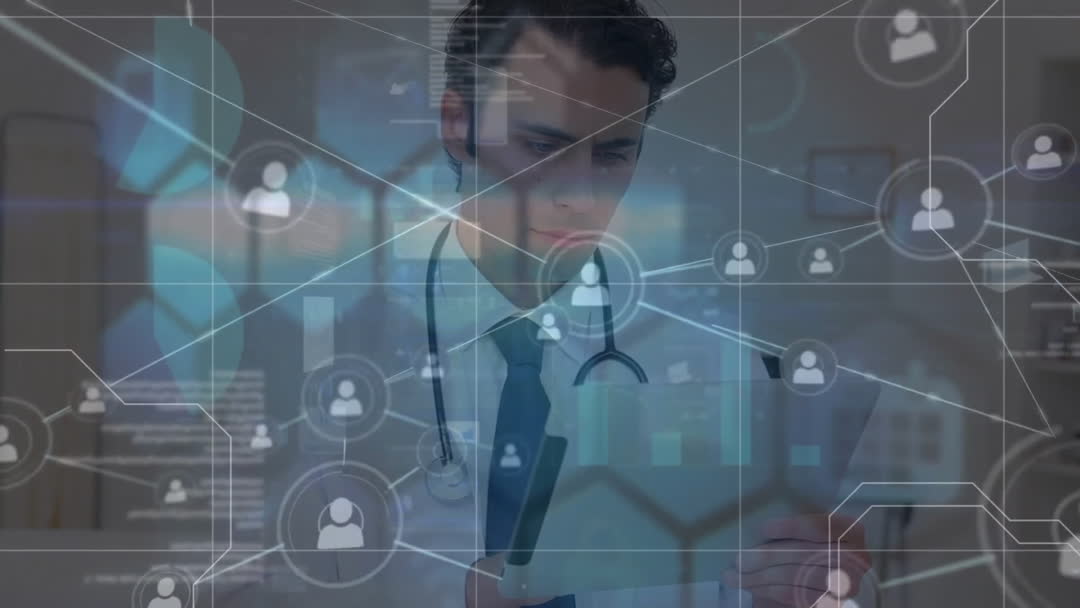 Doctor Analyzing Network of Digital Connections in Healthcare Video