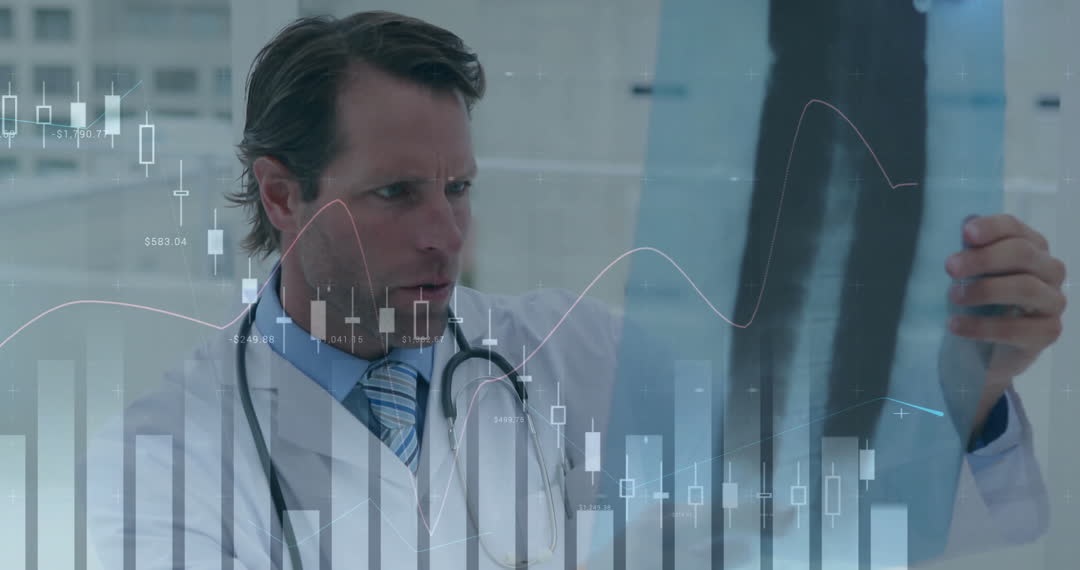 - Doctor Analyzing X-Ray Overlaid with Stock Market Data
